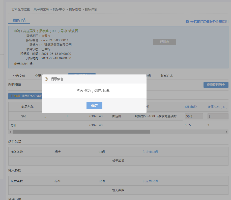 热烈祝贺公司中标中建筑港集团有限公司(宜春市尚庄码头)招字第(005)号-护坡块石
